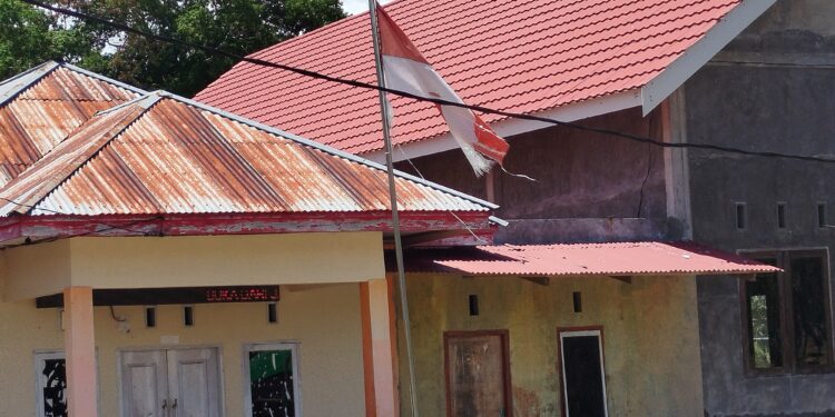 Miris, dan sangat disayangkan Bendera merah putih yang di pasangan di muka kantor Desa Halabolu terlihat kusam dan sudah robek.