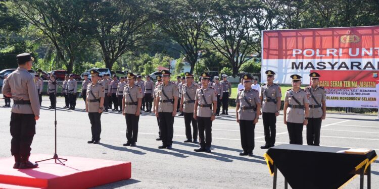 BOLSEL-SelatanTimes.com – Kapolres Bolaang Mongondow Selatan (Bolsel) AKBP Kuntadi Budi Pranoto, S.IK. Pimpin Sertijab empat Pejabat Utama (JPU), dan Kapolsek.