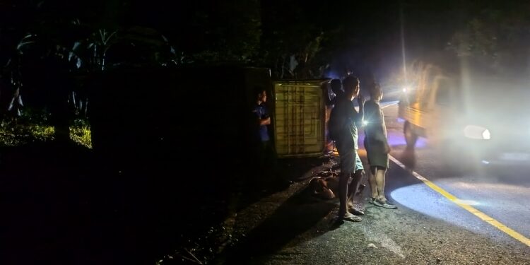 Kendaraan Dam Truk Terguling Di Tanjakan Trans Pato’a, Tidak Ada Korban Jiwa