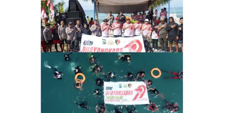HUT Bhayangkara : Tim Diver Sukses Betangkan Spanduk Di Dasar Laut Bolsel, Dukung Bhayangkara Ideal Fest 2025