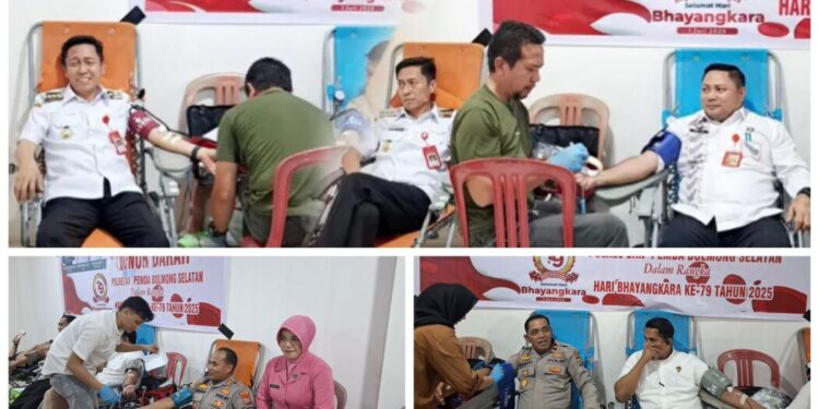 BOLSEL-SelatanTimes.com – Kepolisian Resor Kabupaten Bolaang Mongondow Selatan (Polres Bolsel) bersama Pemerintah Daerah Kabupaten Bolaang Mongondow Selatan (Pemkab Bolsel) melaksanakan kegiatan donor darah dalam rangka menyambut HUT Bhayangkara ke-79 Tahun.