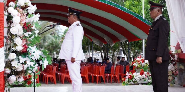 SELATANTIMES.COM-BOLSEL-Wakil Bupati Bolaang Mongondow Selatan (Bolsel), Deddy Abdul Hamid menjadi Inspektur Upacara dalam upacara penurunan Bendera dalam rangka memperingati Hari Ulang Tahun (HUT) Republik Indonesia Ke-80 Tahun.