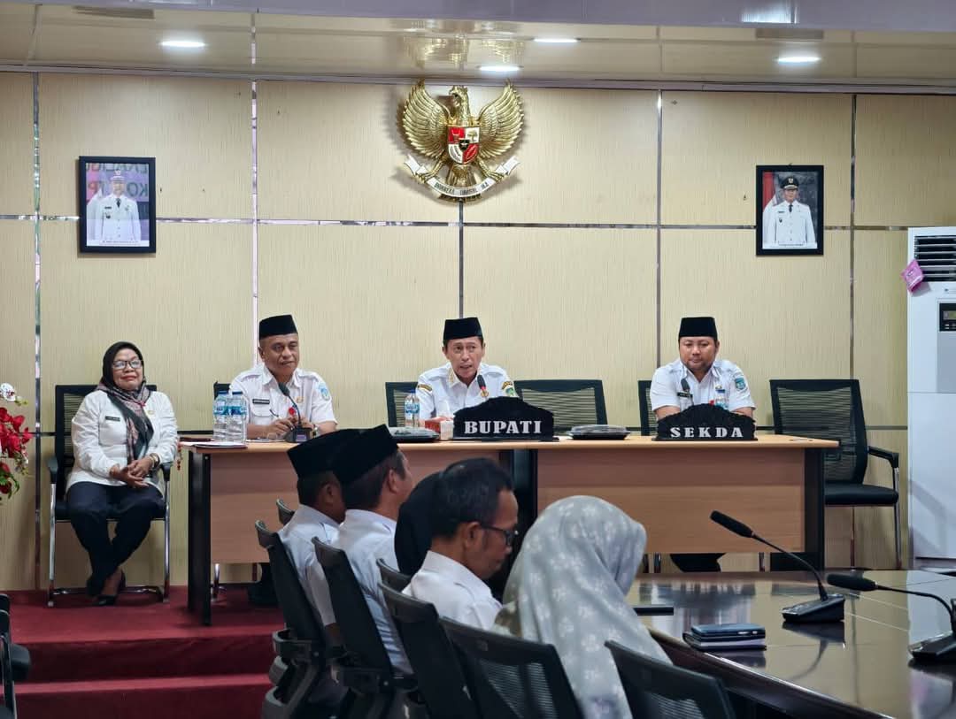 Rapat yang digelar di Ruang Berkah, Kantor Bupati turut dihadiri oleh Sekretaris Daerah Bolsel Marzanzius A. Ohy, S.STP., MAP, Asisten I Setda Bolsel, sejumlah Kepala OPD, Kepala Puskesmas, Camat, PL KB, serta Tim TP3S Kabupaten Bolsel.