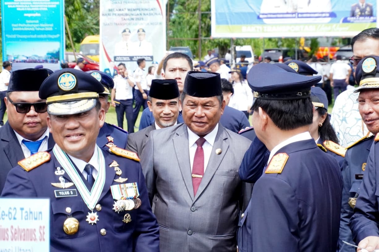 Wakil Bupati Bolaang Mongondow Selatan (Bolsel) Deddy Abdul Hamid menghadiri upacara peringatan Hari Perhubungan Nasional (Harhubnas) 2025. Upacara yang digelar di Lapangan Angkasa Pura I Manado berlangsung Pada Kamis (18/09/2025).