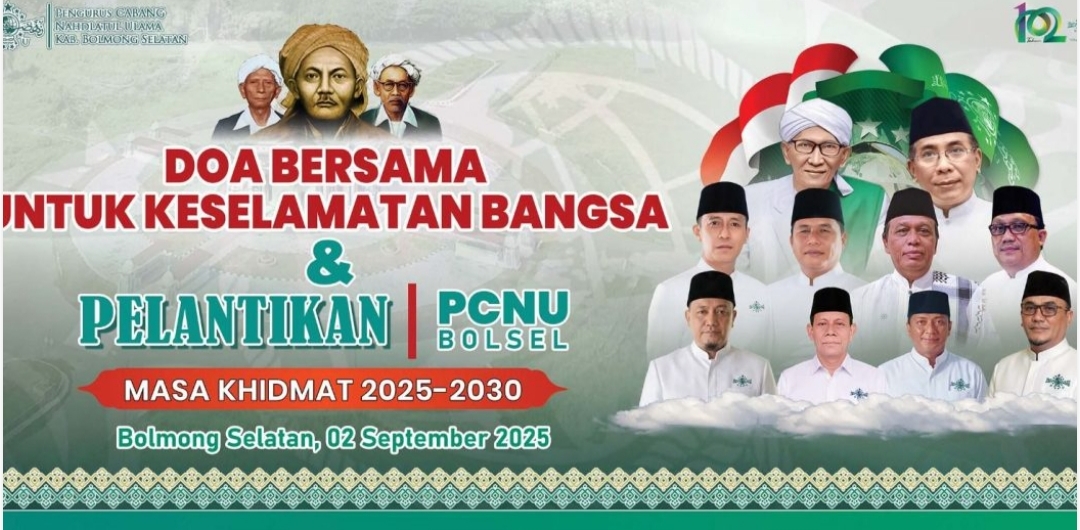 SELATANTIMES.COM – Pimpinan Cabang Nahdlatul Ulama (PCNU) Kabupaten Bolaang Mongondow Selatan (Bolsel) akan menggelar Pelantikan Pengurus Masa Khidmat 2024–2030 dan dirangkaikan dengan Doa Bersama untuk Keselamatan Bangsa.