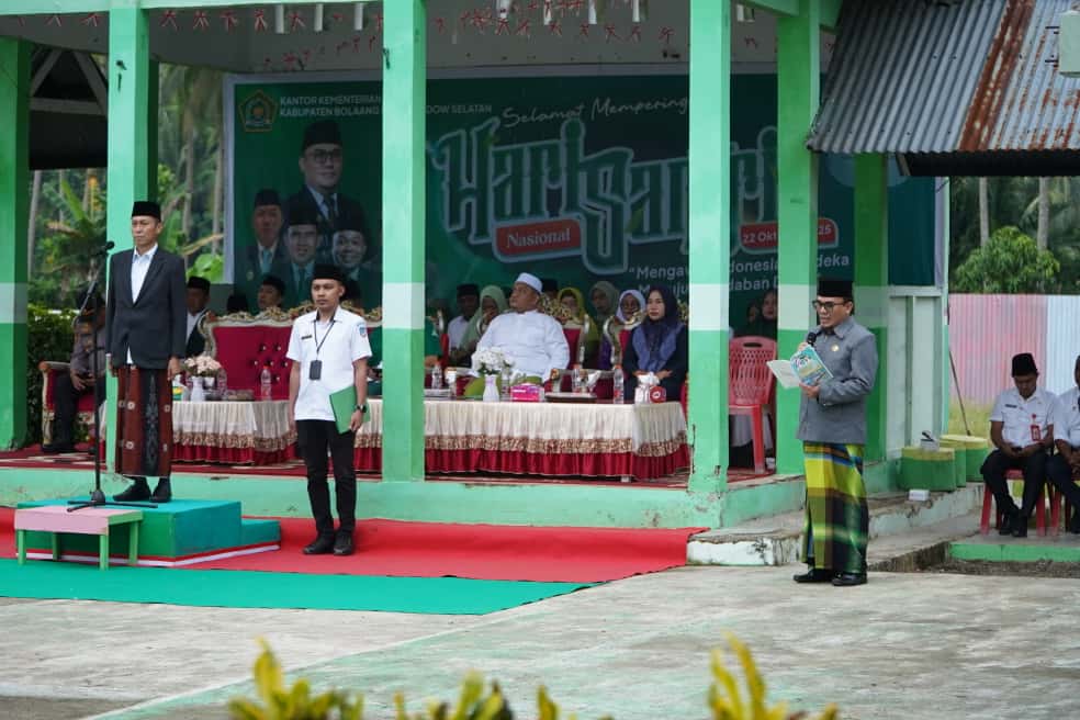 SELATANTIMES.COM-BOLSEL-Bupati Bolaang Mongondow Selatan (Bolsel), H. Iskandar Kamaru, S.Pt. M.SI hadir dan sekaligus jadi Inspektur upacara dalam peringatan Hari Santri Nasional Tahun 2025. Upacara yang digelar di halaman MIN 1 Bolsel Kecamatan Bolaang Uki, Desa Tolondadu, Rabu (22/10/2025) berlangsung dengan khidmat.