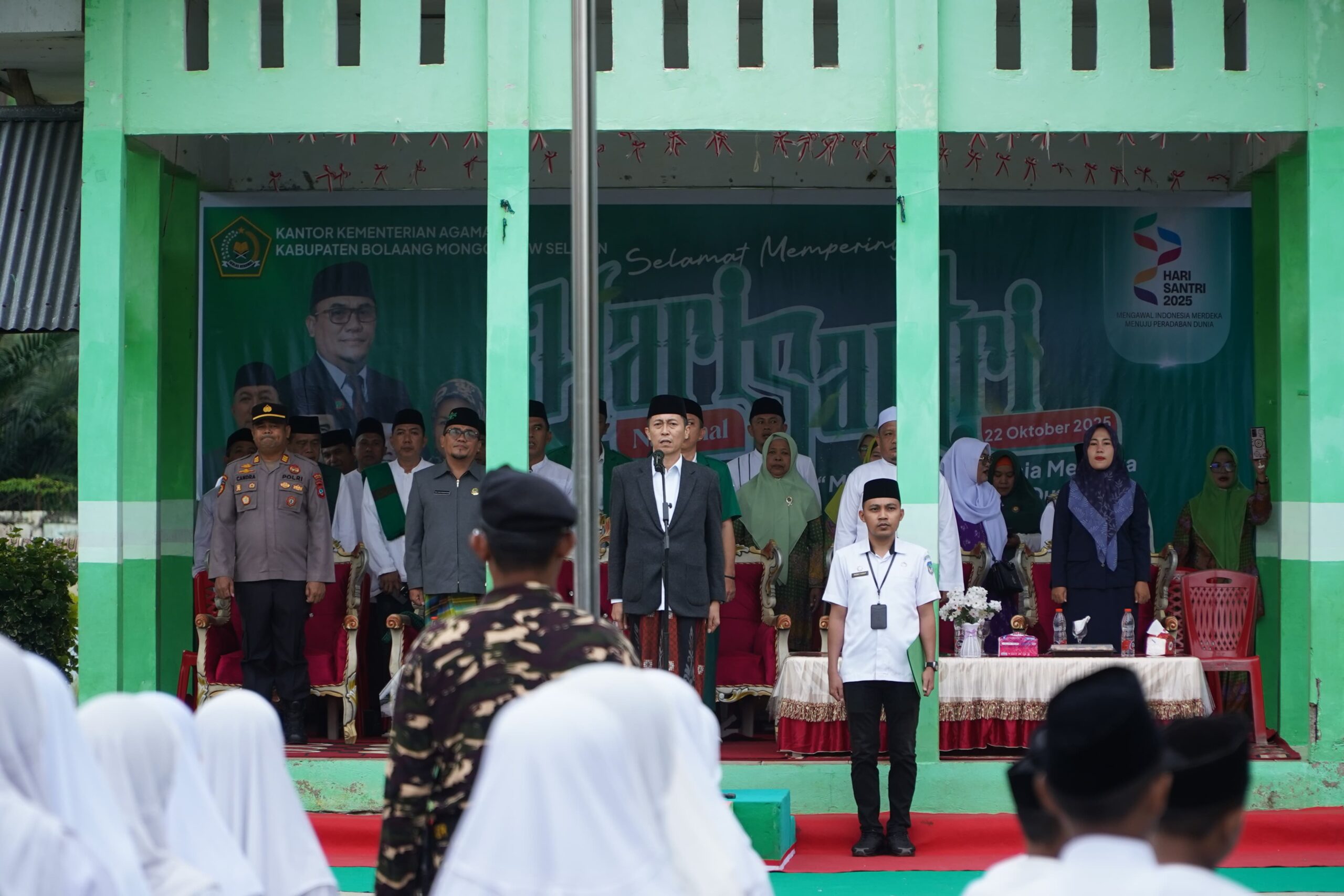 Upacara ini turut dihadiri oleh Kepala Kantor Kementerian Agama Kabupaten Bolsel, Ketua Nahdlatul Ulama (NU) Bolsel yang membacakan Resolusi Jihad, Wakil Ketua PW Ansor Provinsi Sulawesi Utara, Ketua Muhammadiyah Bolsel, jajaran Forkopimda, para pimpinan OPD, para guru, serta ratusan santri dari seluruh wilayah Bolsel.