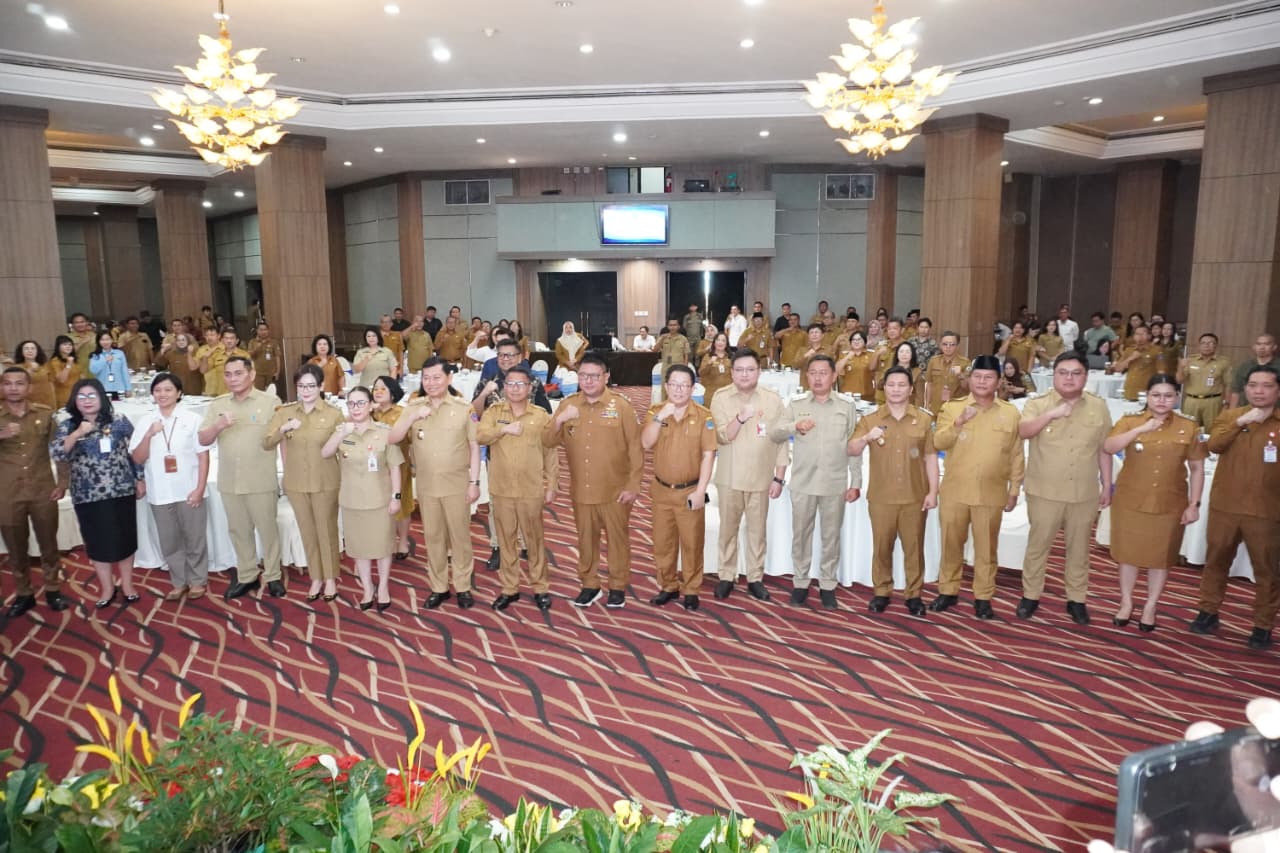 Rakor yang berlangsung di Hotel Aryaduta Manado, di ikuti oleh seluruh Kabupaten/Kota dan lintas sektor, Pada, Selasa 7 Oktober 2025 .