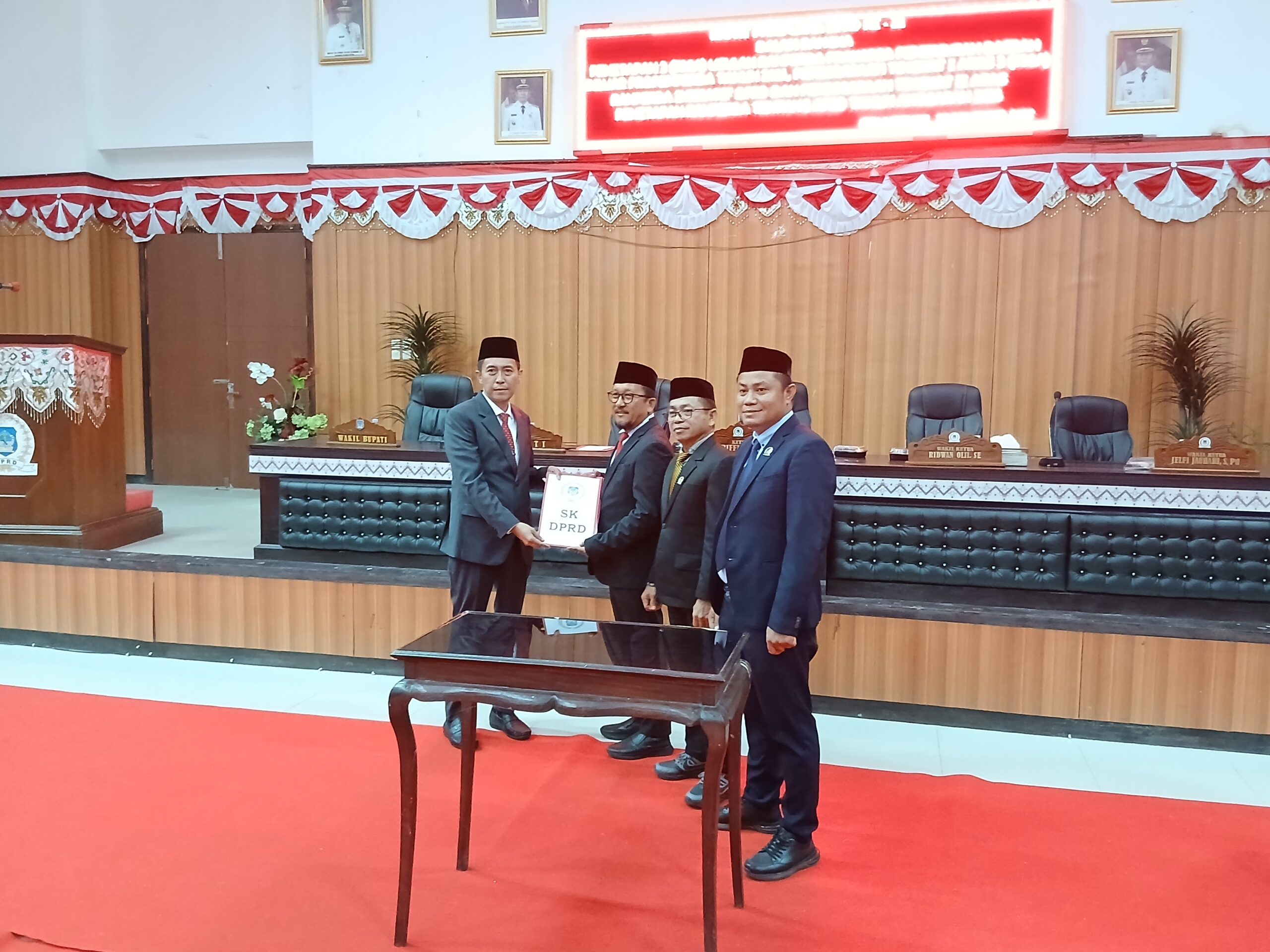 Rapat Paripurna di pimpin langsung oleh Ketua DPRD Arifin Olii, Wakil satu Ridwan Olii dan Wakil Ketua dua Jelfri Jauhari, S.Pd, Dari ketiga praksi menyutujui untuk tiga Ranperda Prakasa dan tiga Ranperda Inisiatif DPRD untuk di bahas ketahap selanjutnya, Sementara Ranperda tentang APBD Tahun 2026 untuk segera ditetapkan.