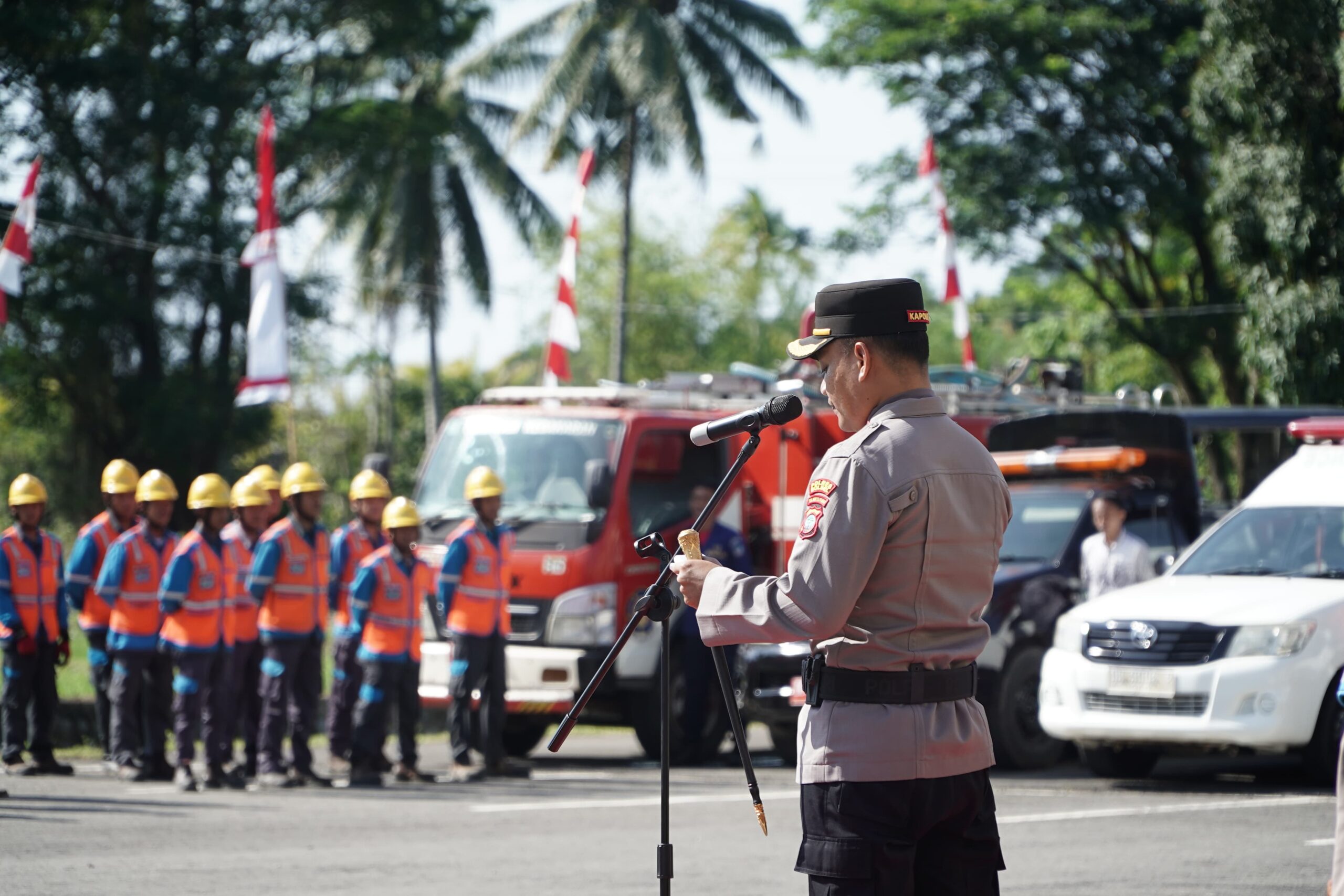 Kapolres dalam sambutannya menegaskan bahwa apel ini merupakan bentuk pengecekan terhadap kesiapan personel maupun sarana prasarana dalam pencegahan dan penanggulangan bencana alam.