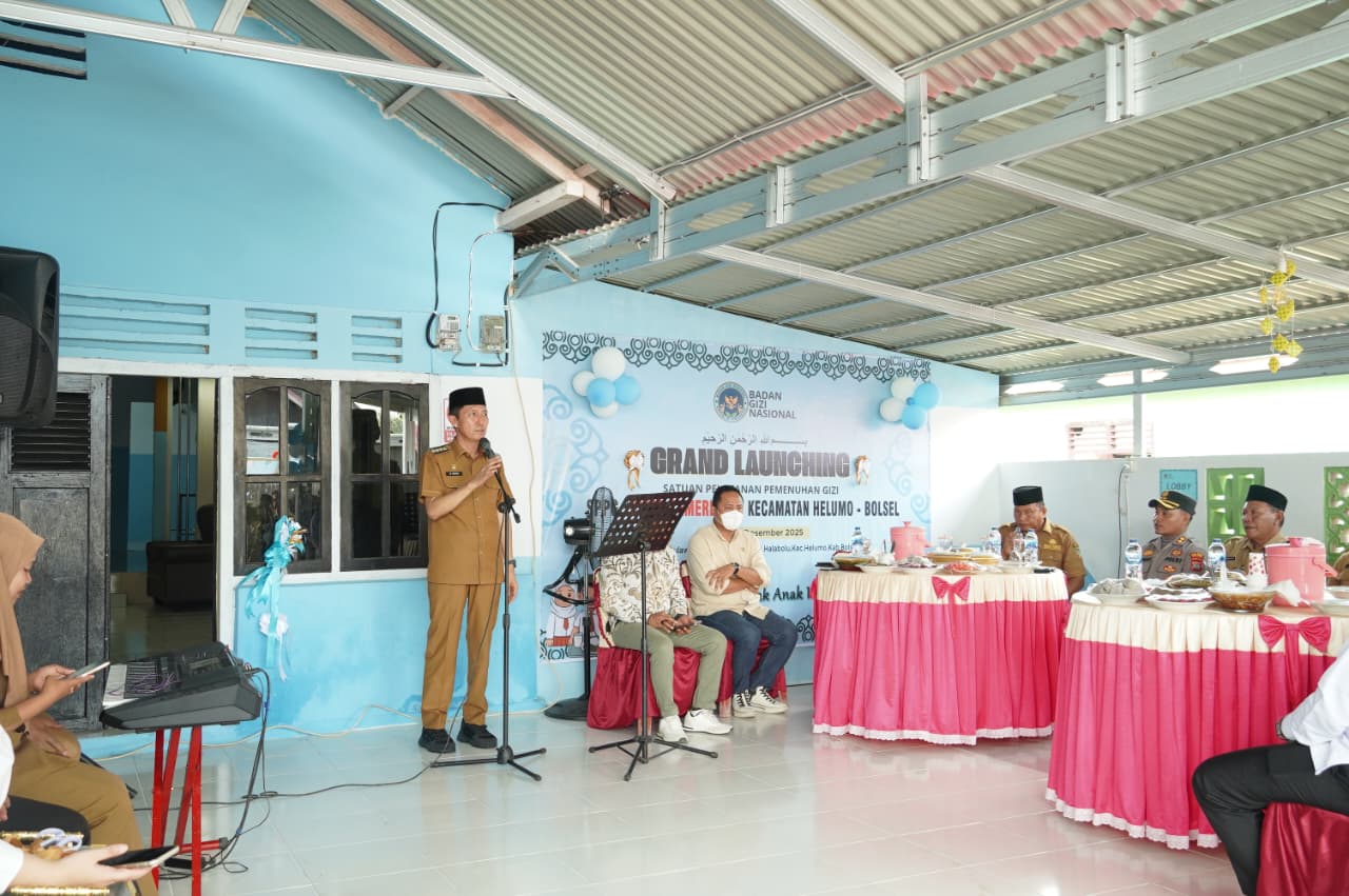 SELATANTIMES.COM-BOLSEL-Bupati Bolaang Mongondow Selatan (Bolsel), H. Iskandar Kamaru, S.Pt. M.SI dan Wakil Bupati Deddy Abdul Hamid, meresmikan dapur Makan Begizi Gratis (MBG) di Kecamatan Helumo, Pada Senin (08/12/2025).