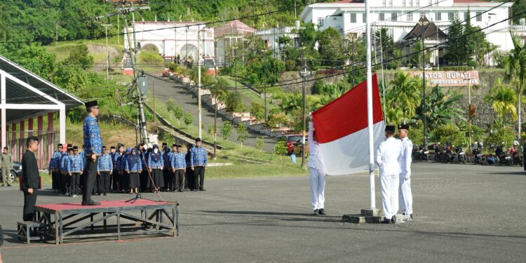 SELATANTIMES.COM-BOLSEL-Bupati Bolaang Mongondow Selatan (Bolsel), H. Iskandar Kamaru, S.Pt. M.SI, bertindak selaku Inspektur Upacara dalam peringatan Hari Ulang Tahun (HUT) Korps Pegawai Republik Indonesia (Korpri) ke- 54 Tahun 2025.