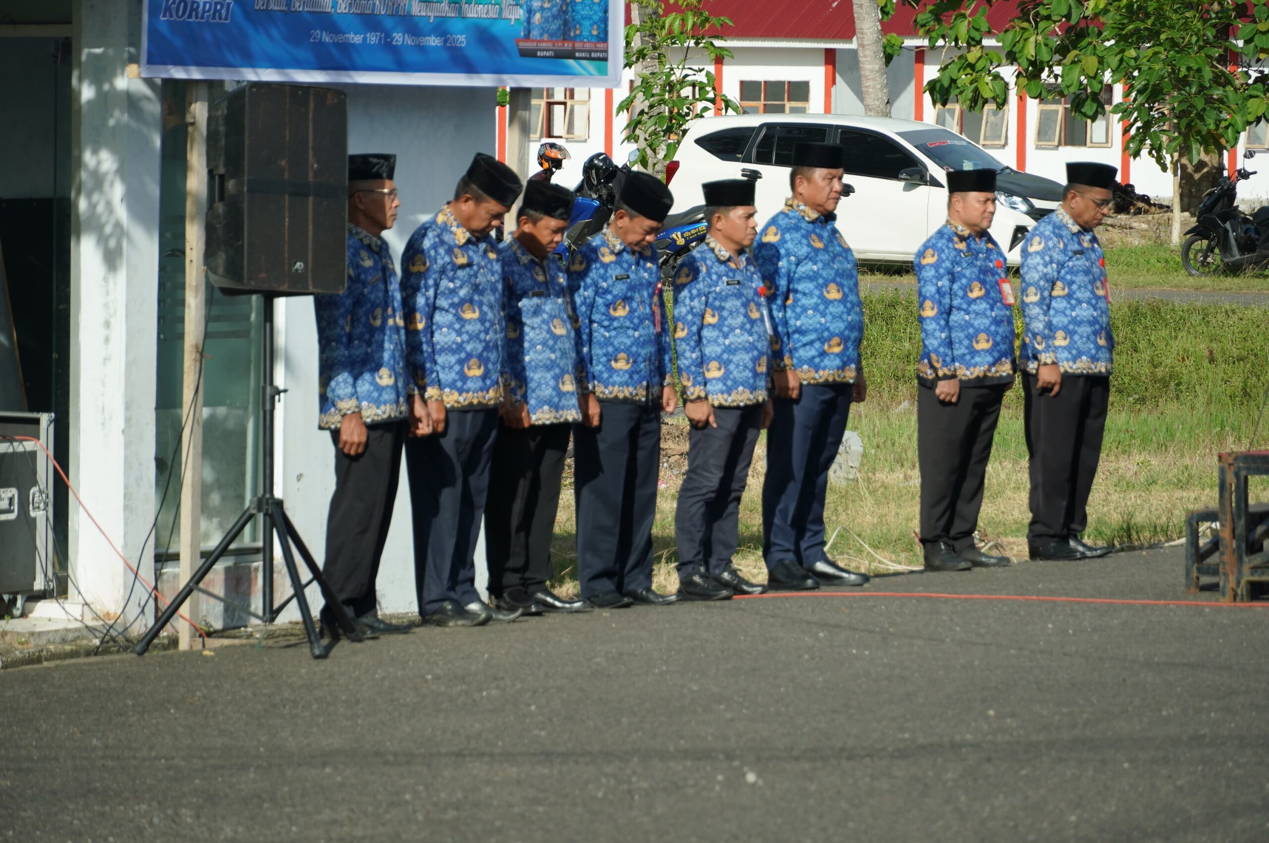Giat yang mengusung tema ” Bersatu, Berdaulat, Bersama Korpri Dalam Mewujudkan Indonesia Maju” di laksanakan di lapangan apel Kompleks Perkantoran, Panango, Kecamatan Bolaang Uki, Desa Tabilaa, Senin (01/12/2025).