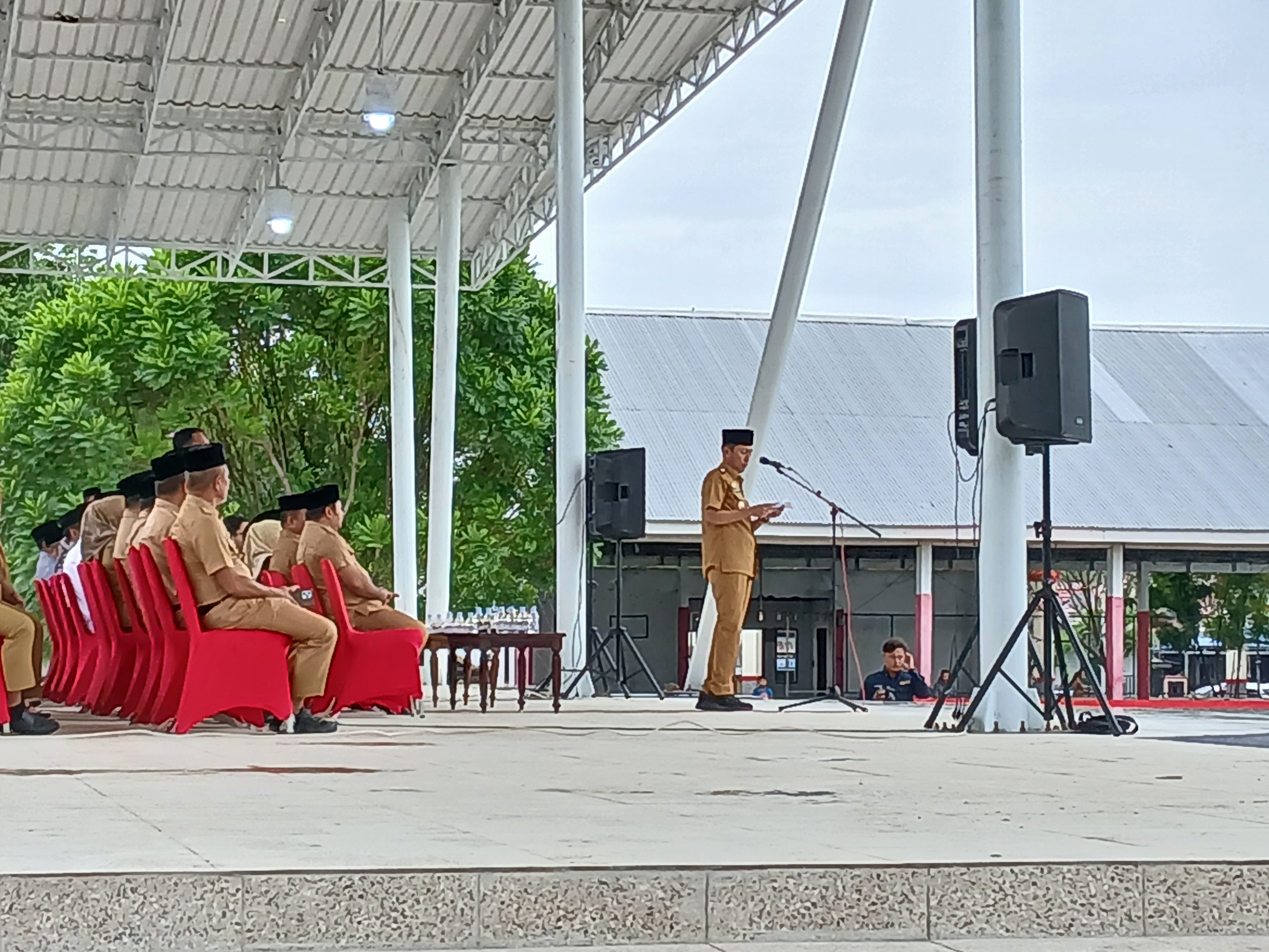 Dalam kesempatan ini Bupati Iskandar Kamaru memimpin langsung apel kerja perdana. Ia pun menyampaikan di tahun 2026 kita di perhadapkan dengan tantangan efisiensi anggaran dan semoga tidak akan menyurutkan kinerja dari kita semua.