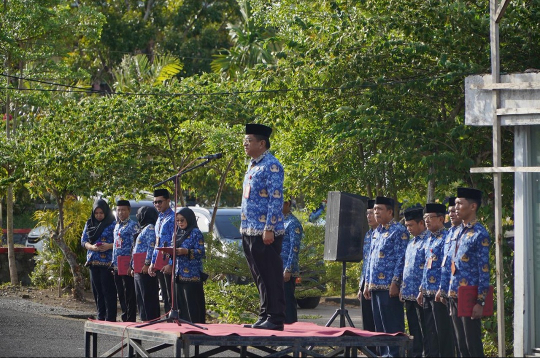 “Pak Bupati dan Pak Wabup menyampaikan apresiasi bagi Bapak/Ibu yang hadir pagi ini. Kedisiplinan adalah identitas ASN. Memasuki tahun 2026, kita harus meningkatkan standar kerja kita lebih tinggi dari tahun sebelumnya,” tegasnya saat membacakan arahan Bupati.