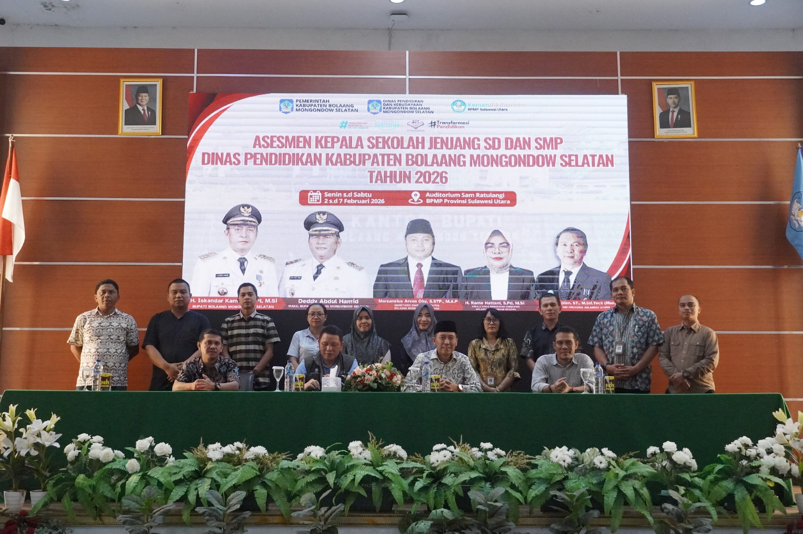 Kegiatan asesmen yang dilaksanakan di Balai Penjaminan Mutu Pendidikan (BPMP) Sulawesi Utara, Kota Manado, diikuti oleh 90 Kepala Sekolah (Kepsek) SD dan SMP se-Kabupaten Bolsel sebagai bagian dari upaya sistematis pemerintah daerah dalam memastikan kualitas kepemimpinan di satuan pendidikan.