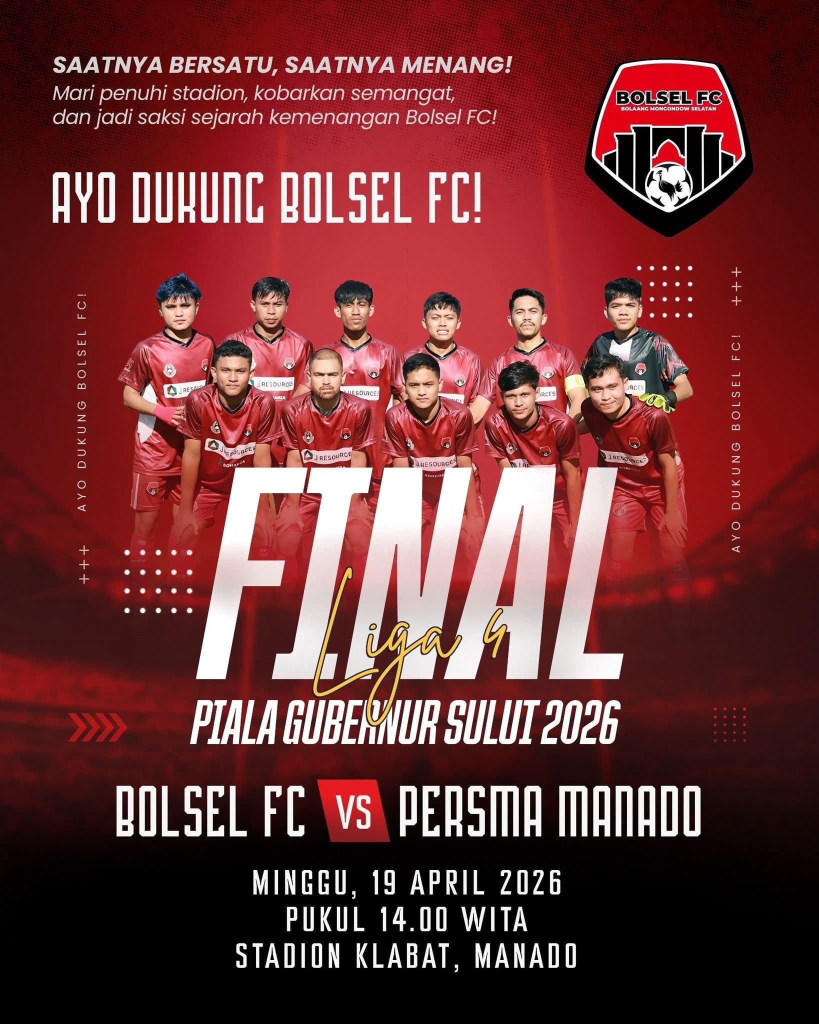 Duel sengit antara Bolsel FC melawan Persma 1960 akan tersaji di Stadion Klabat, Manado, pada Minggu (19/04/2026) pada pukul 14.00 WITA.