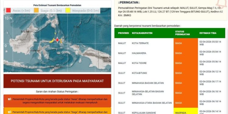 SELATANTIMES.COM-Badan Meteorologi, Klimatologi, dan Geofisika (BMKG) mengonfirmasi telah terjadi gempa bumi tektonik berkekuatan besar yang mengguncang wilayah Bitung, Sulawesi Utara, dan sekitarnya pada Kamis (02/04/2026).